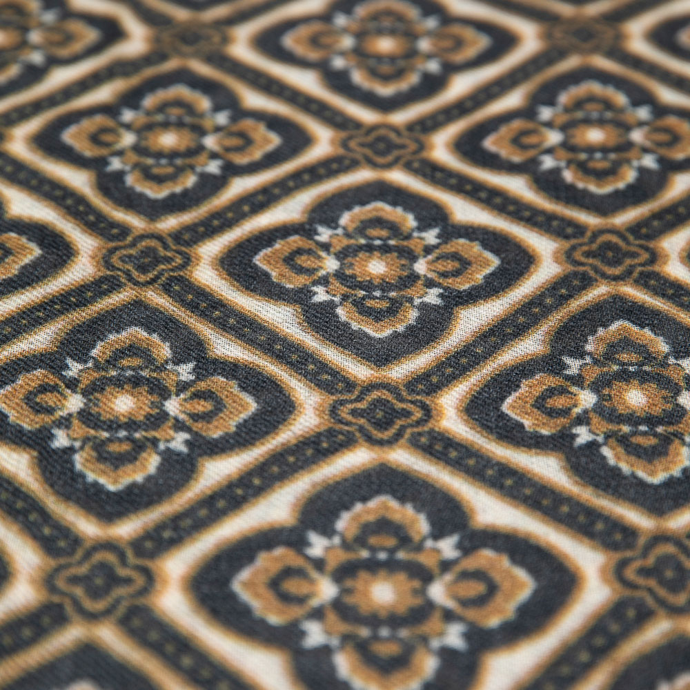 Le lavorazioni jacquard sono tecniche tessili complesse che permettono di creare tessuti con disegni intricati e multicolori. La tecnica consente di utilizzare una vasta gamma di colori e filati, tra cui seta, cotone e altri materiali pregiati, per creare tessuti di grande bellezza e qualità. In particolare, le lavorazioni jacquard indiane sono rinomate, perché avvengono ancora con il telaio manuale, mantenendo intatta la tradizione artigianale e l’autenticità del prodotto.