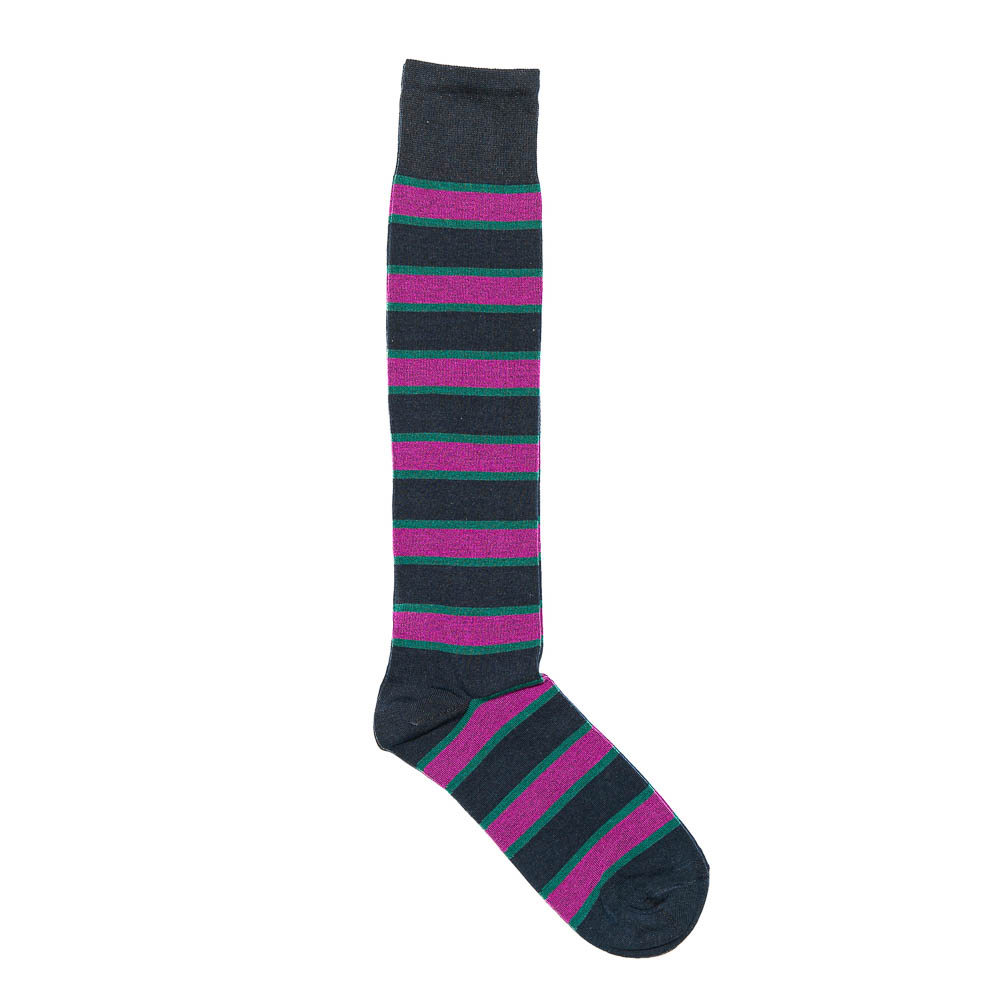 Calze lunghe da uomo realizzate in Italia in caldo cotone, morbidissime al tatto e create per adattarsi perfettamente ad ogni tipo di look. Il dettaglio del calzino lungo che spunta dai pantaloni è sufficiente per aggiungere all’insieme un tocco inconfondibile; si tratta di un particolare colorato e inusuale che non passa di certo inosservato.