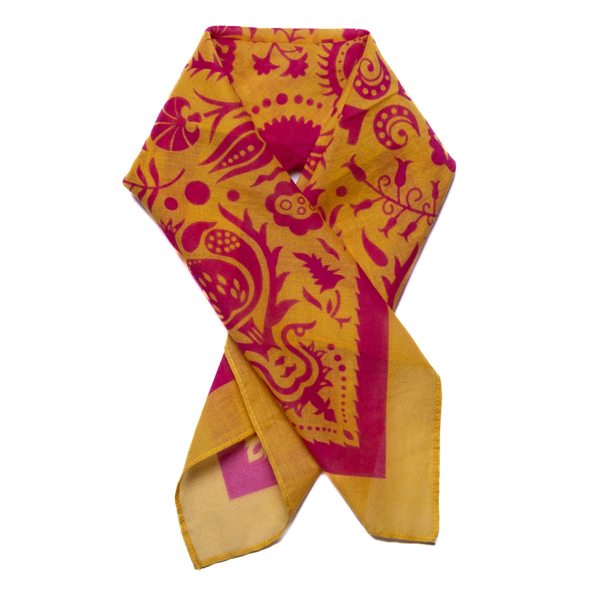 Foulard realizzato in puro cotone di alta qualità, morbido e leggero al tatto. Presenta disegni armoniosi e combinazioni cromatiche raffinate, pensate per una sobria eleganza. I bordi sono finemente rifiniti, a garanzia di durata e resistenza. Un accessorio versatile per essere indossato al collo, sui capelli o come dettaglio su borse e altri capi.