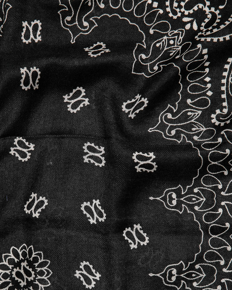 Sciarpa in modal e lana morbidissima con disegno bandana, adatta anche per le temperature più miti, un’ottima alternativa per chi ha sensibilità cutanea al contatto con la pura lana. Il modal, fibra naturale derivata dal legno di faggio, è molto più resistente ai lavaggi e garantisce la longevità dei capi.