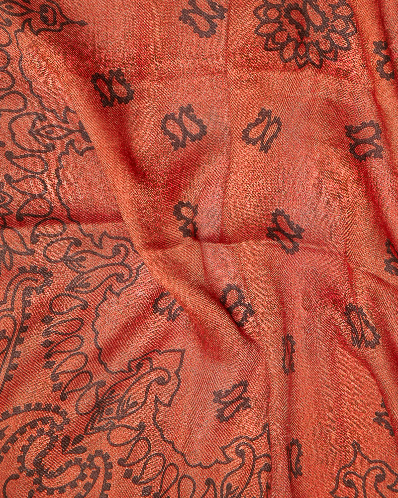 Sciarpa in modal e lana morbidissima con disegno bandana, adatta anche per le temperature più miti, un’ottima alternativa per chi ha sensibilità cutanea al contatto con la pura lana. Il modal, fibra naturale derivata dal legno di faggio, è molto più resistente ai lavaggi e garantisce la longevità dei capi.