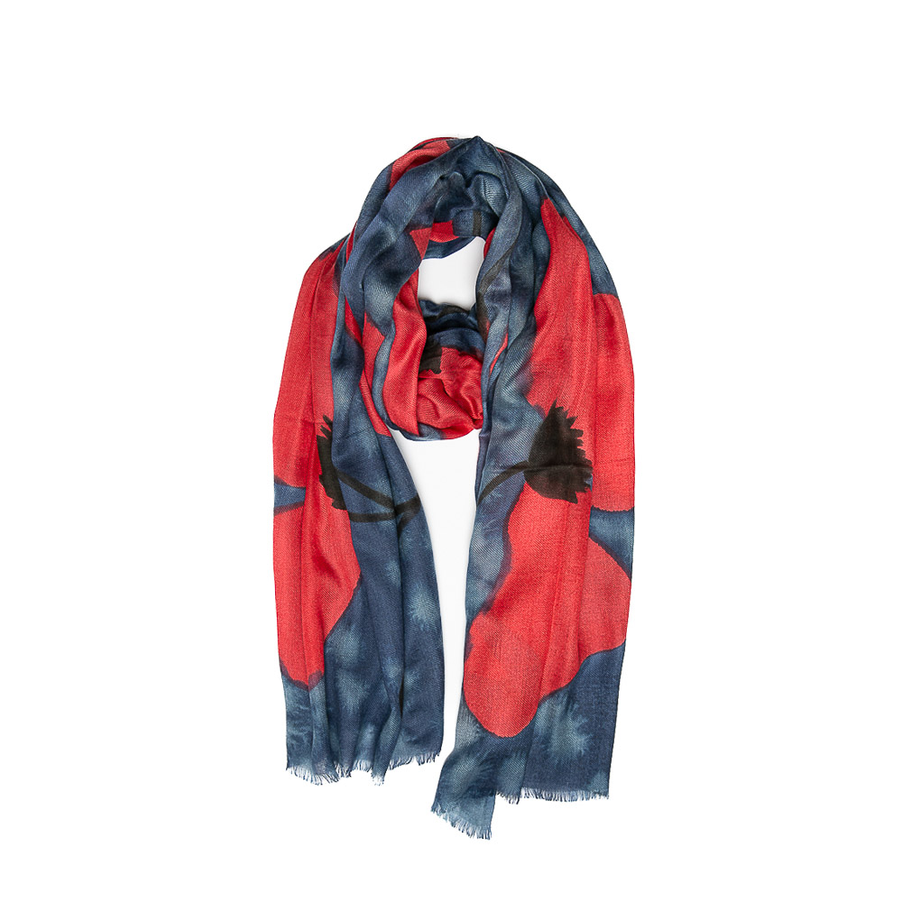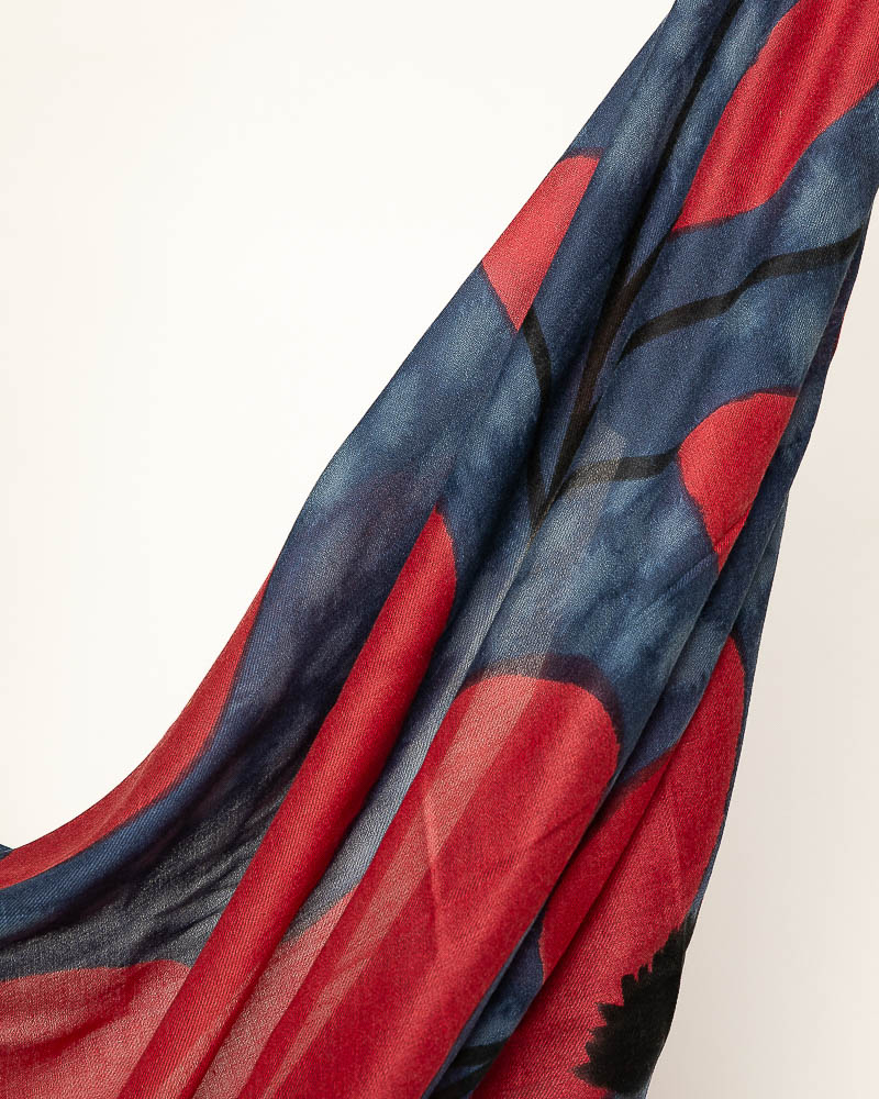 Sciarpa in modal e lana morbidissima, interamente dipinta a mano con disegno macro floreale, adatta anche per le temperature più miti, un’ottima alternativa per chi ha sensibilità cutanea al contatto con la pura lana. Il modal, fibra naturale derivata dal legno di faggio, è molto più resistente ai lavaggi e garantisce la longevità dei capi.