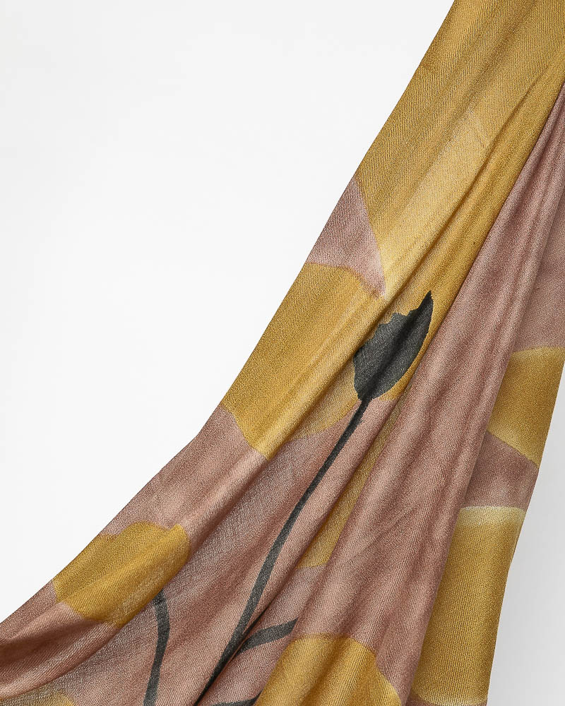 Sciarpa in modal e lana morbidissima, interamente dipinta a mano con disegno macro floreale, adatta anche per le temperature più miti, un’ottima alternativa per chi ha sensibilità cutanea al contatto con la pura lana. Il modal, fibra naturale derivata dal legno di faggio, è molto più resistente ai lavaggi e garantisce la  longevità dei capi.