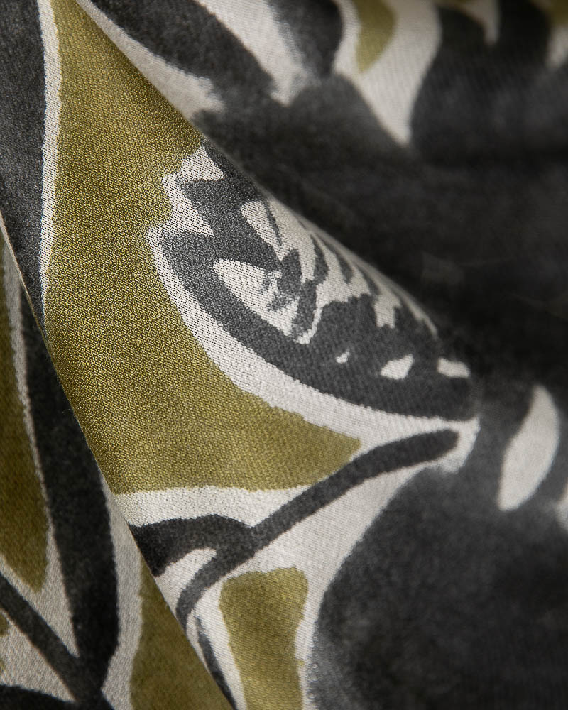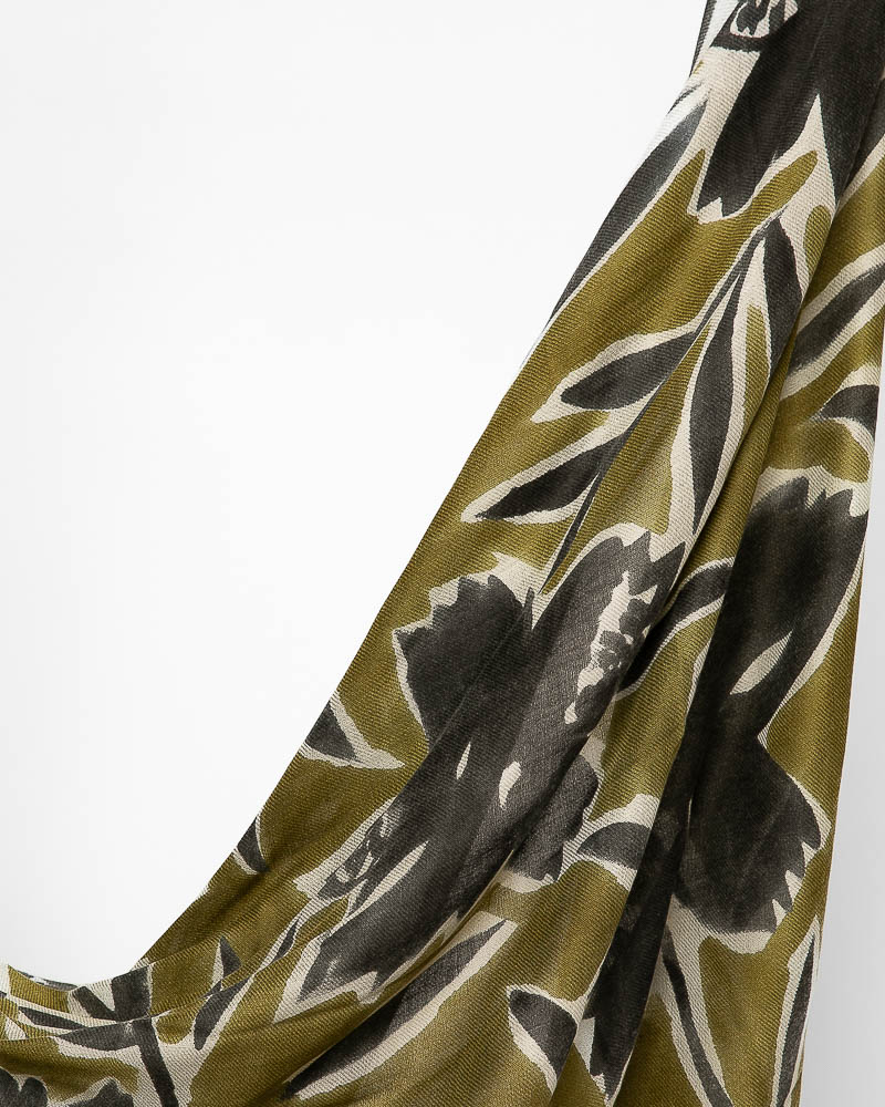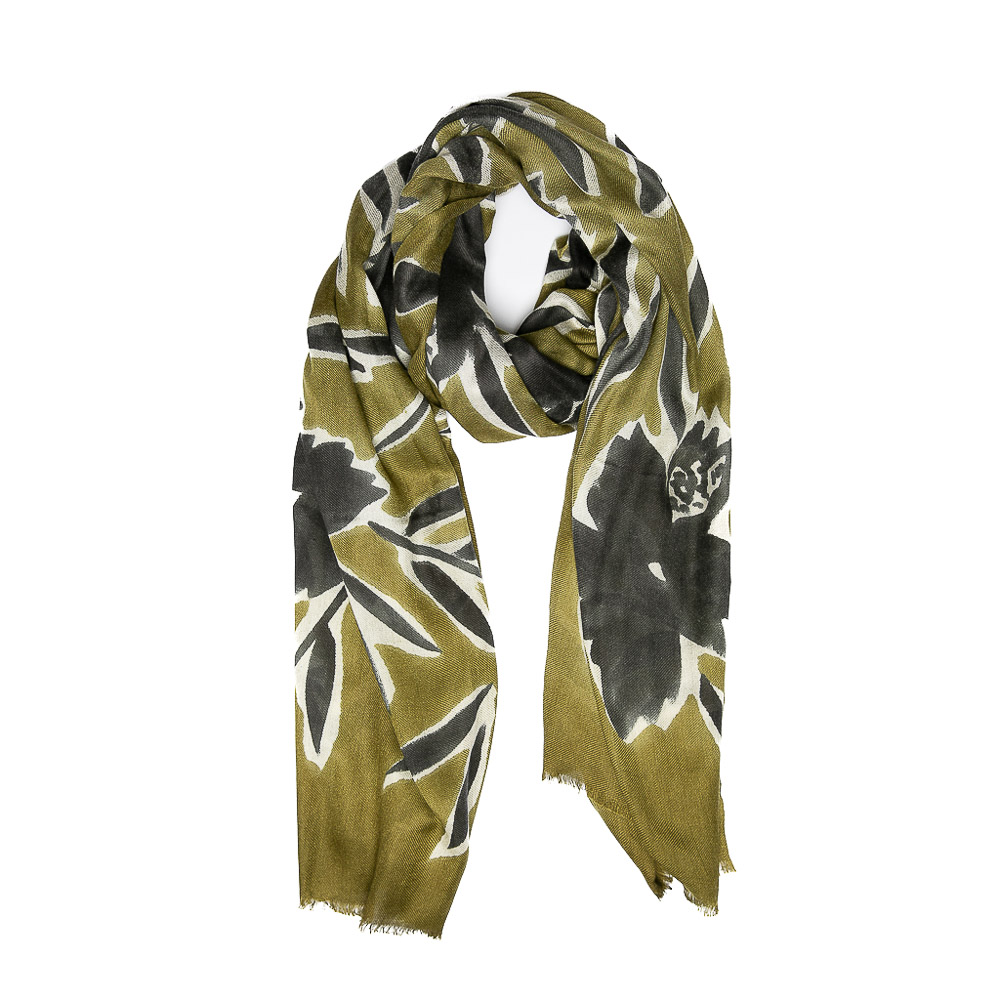 Sciarpa in modal e lana morbidissima, interamente dipinta a mano con disegno macro floreale, adatta anche per le temperature più miti, un’ottima alternativa per chi ha sensibilità cutanea al contatto con la pura lana. Il modal, fibra naturale derivata dal legno di faggio, è molto più resistente ai lavaggi e garantisce la  longevità dei capi.