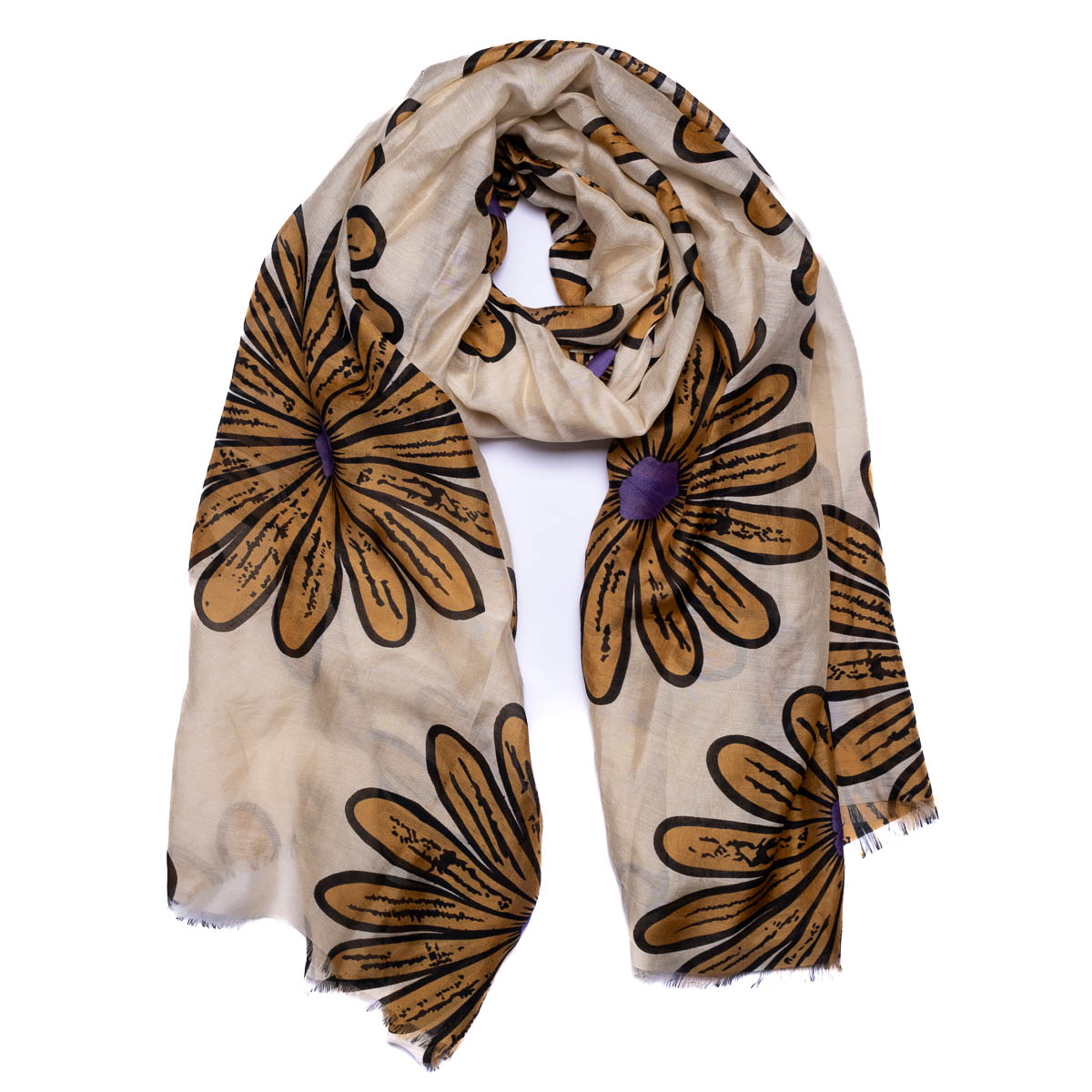 Sciarpa in puro cotone voile, caratterizzata da una texture sottile e traspirante. La stampa floreale, dal design moderno, aggiunge personalità ad ogni look, fluida e versatile, si adatta facilmente ad interpretazioni diverse: portata morbida sulla spalle, annodata al collo, o come dettaglio distintivo su capi essenziali.