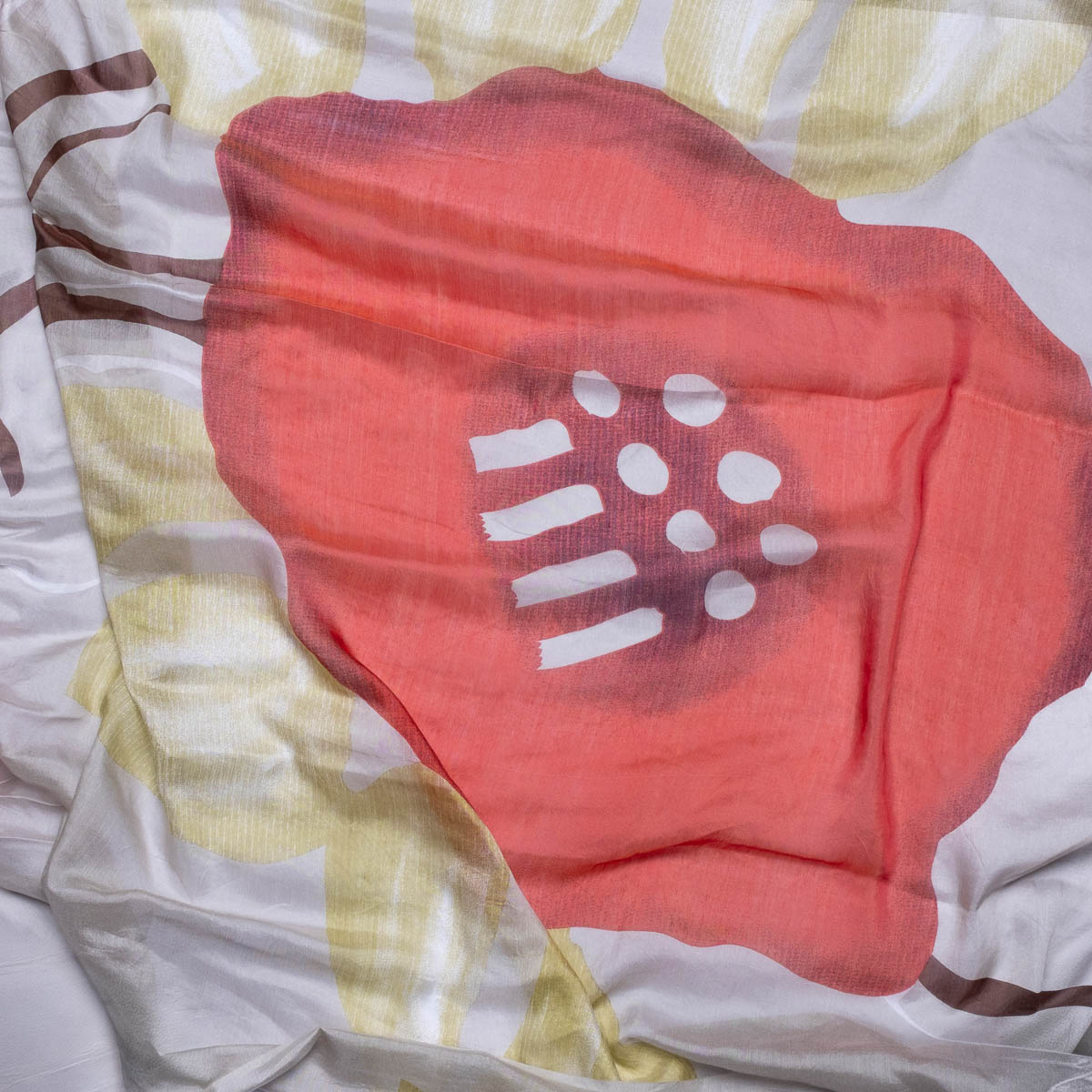 Sciarpa in puro cotone voile, caratterizzata da una texture sottile e traspirante. La stampa floreale, dal design moderno, aggiunge personalità ad ogni look, fluida e versatile, si adatta facilmente ad interpretazioni diverse: portata morbida sulla spalle, annodata al collo, o come dettaglio distintivo su capi essenziali.