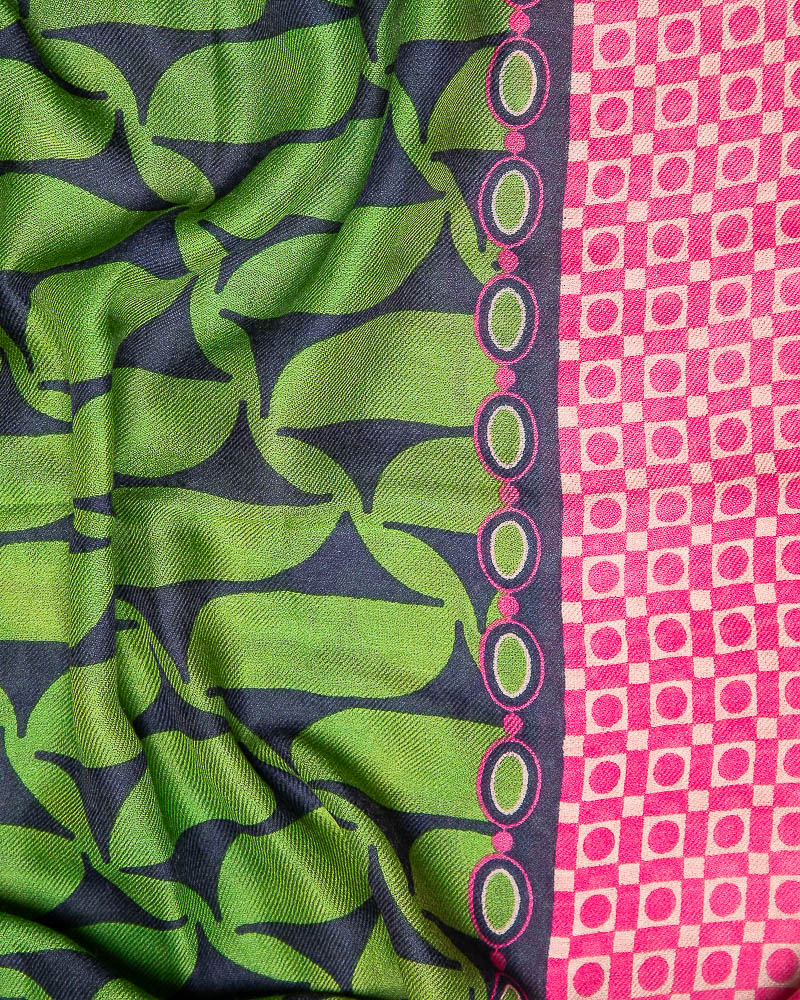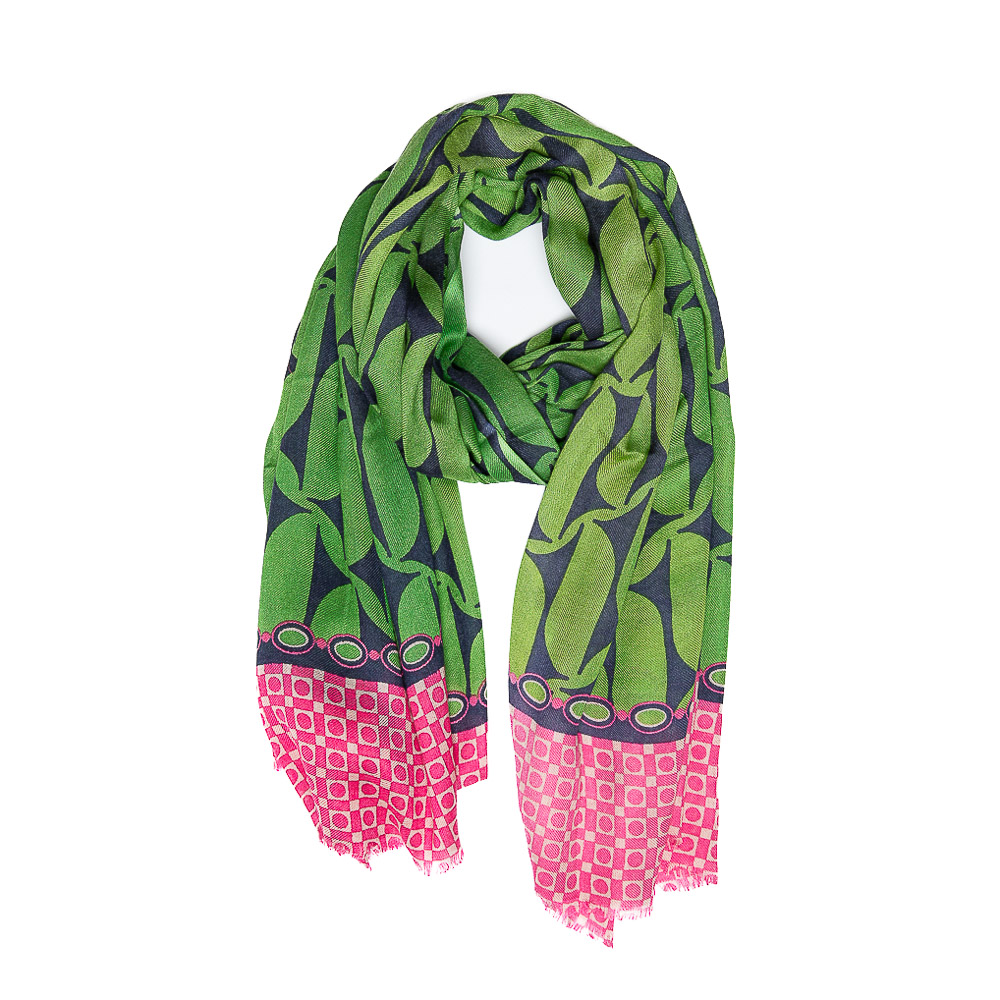 Sciarpa in modal e lana morbidissima con doppia stampa geometrica, adatta anche per le temperature più miti, un’ottima alternativa per chi ha sensibilità cutanea al contatto con la pura lana. Il modal, fibra naturale derivata dal legno di faggio, è molto più resistente ai lavaggi e garantisce la longevità dei capi.