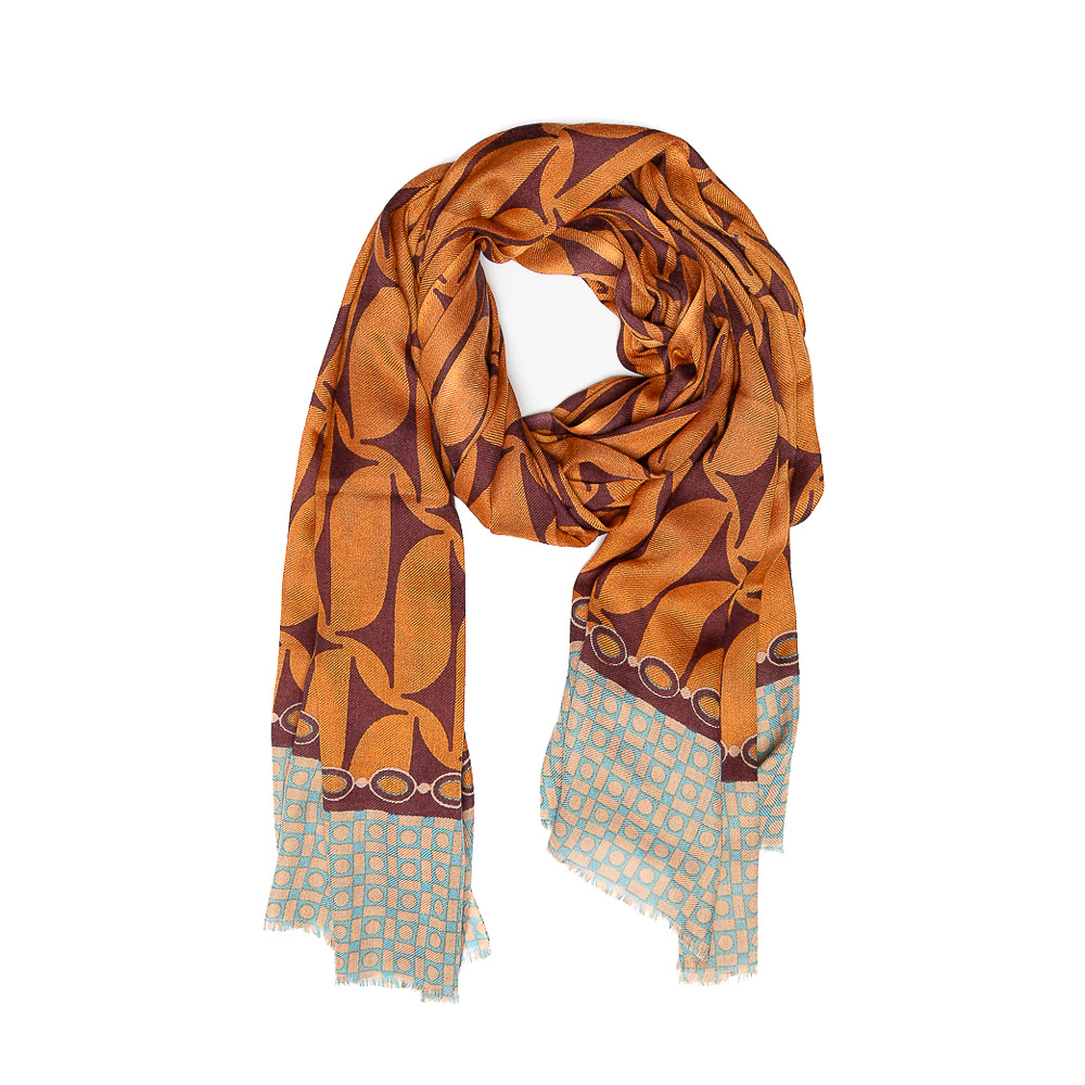Sciarpa in modal e lana morbidissima con doppia stampa geometrica, adatta anche per le temperature più miti, un’ottima alternativa per chi ha sensibilità cutanea al contatto con la pura lana. Il modal, fibra naturale derivata dal legno di faggio, è molto più resistente ai lavaggi e garantisce la longevità dei capi.