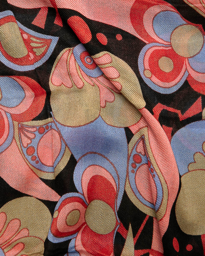 Sciarpa in modal e lana morbidissima con disegno floreale, adatta anche per le temperature più miti, un’ottima alternativa per chi ha sensibilità cutanea al contatto con la pura lana. Il modal, fibra naturale derivata dal legno di faggio, è molto più resistente ai lavaggi e garantisce la  longevità dei capi.