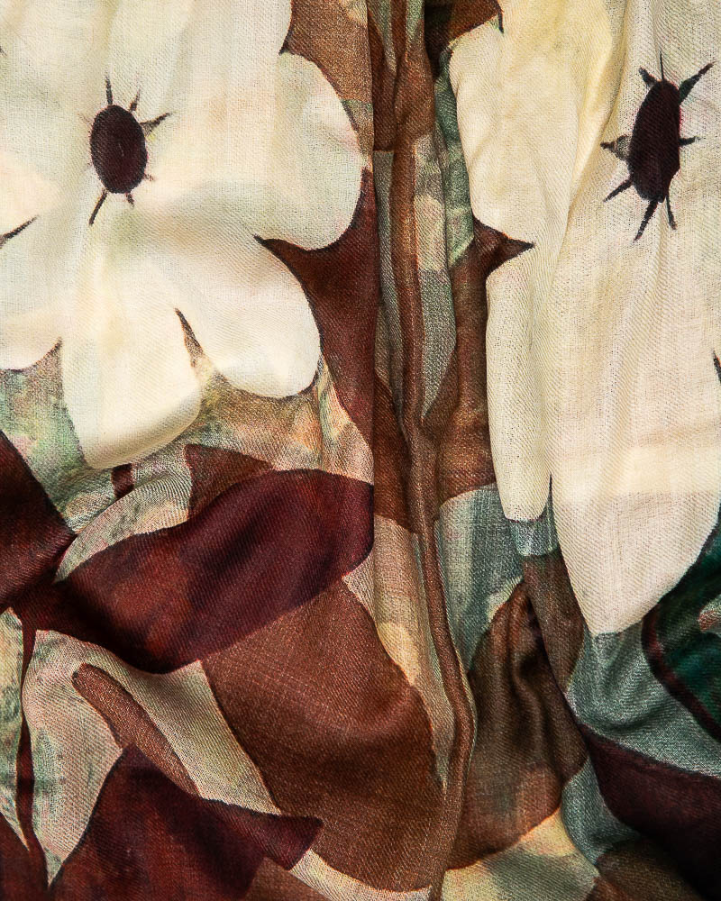 Sciarpa in soffice lana twill con stampa digitale dai motivi floreali.